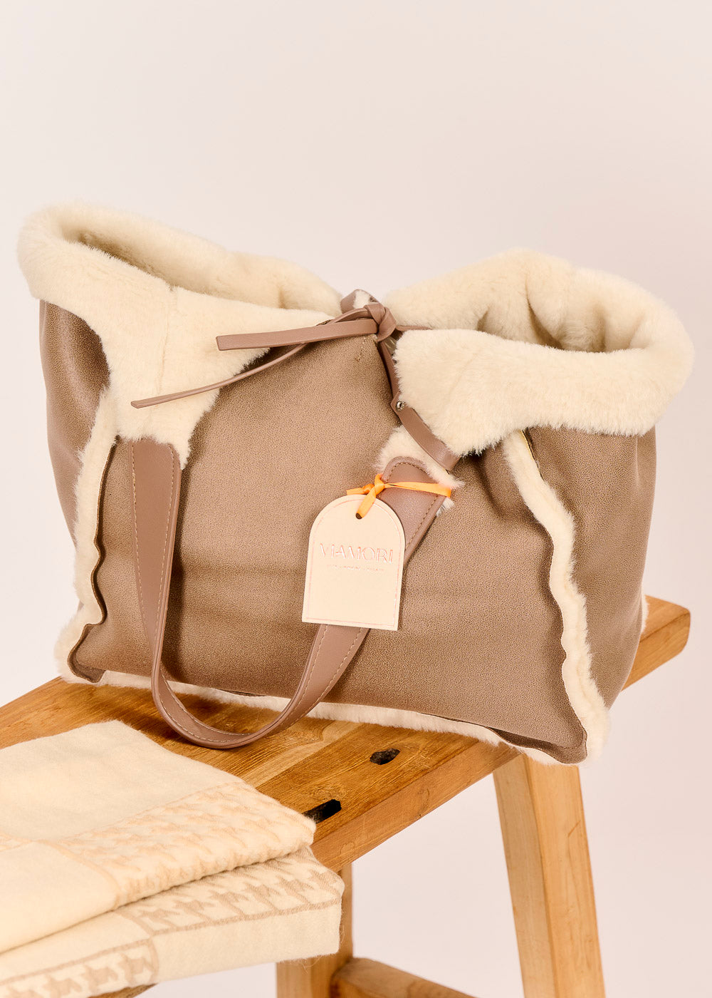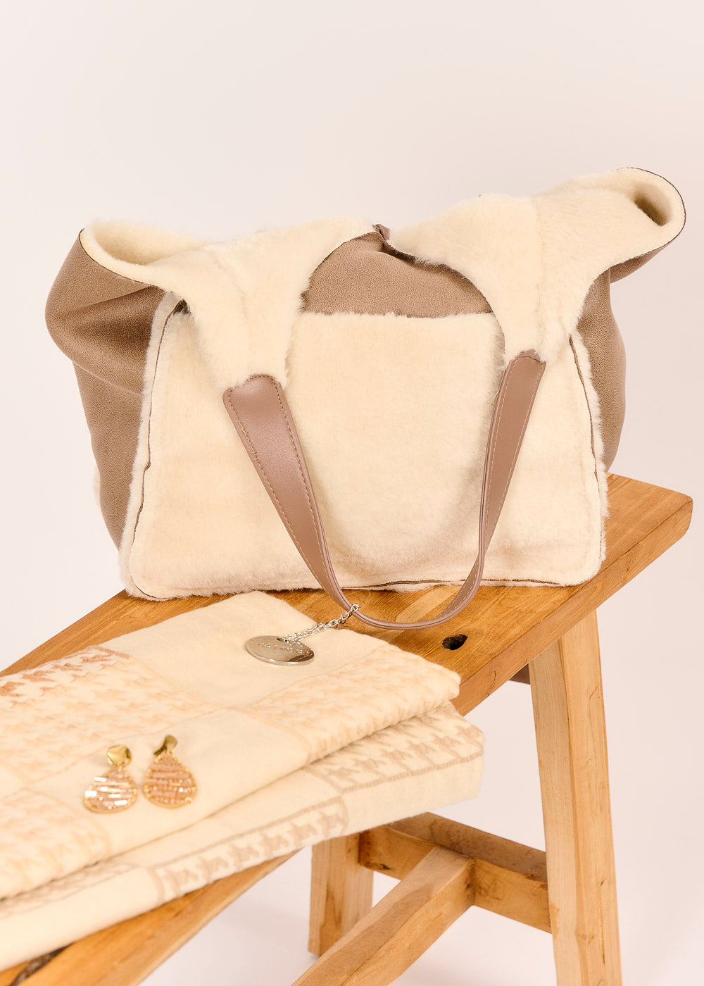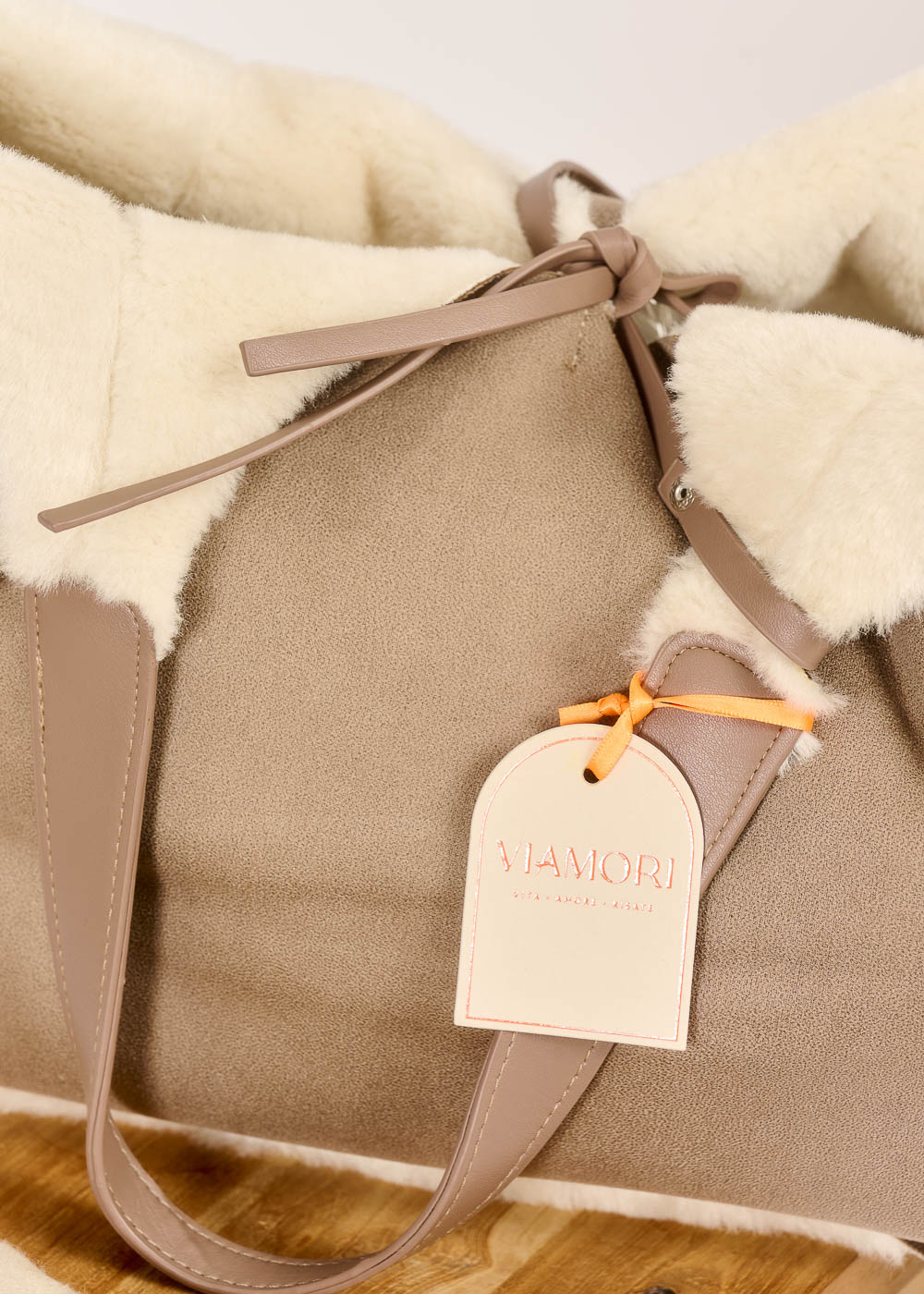 Diese Tasche ist mehr als ein Accessoire – sie ist ein kuscheliges Statement an Tagen, die sich sanft anfühlen sollen. Die harmonisch abgestimmten Farben lassen jeden Look weicher und wärmer wirken. Dabei bietet sie dir genug Platz für alles, was dir wichtig ist.