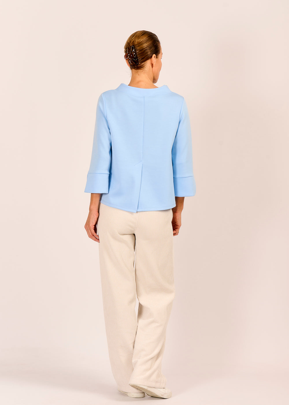 Dieses hellblaue Kastenshirt mit Viskose beeindruckt durch seinen modernen Schnitt und überrascht mit einem Schlitz im Rücken. Die strahlende Farbe verleiht jedem Outfit ein Gefühl von Frische und Leichtigkeit.