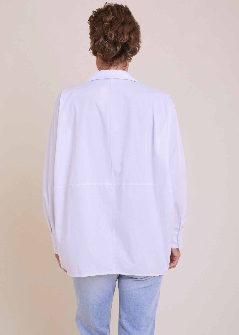 Locker und lässig geschnittene Hemdbluse. Sie hat überschnittene Schultern und lange Ärmel mit Manschetten. Kombiniere diesen Artikel gerne mit Jeans und Sneaker. Länge:70cm.
