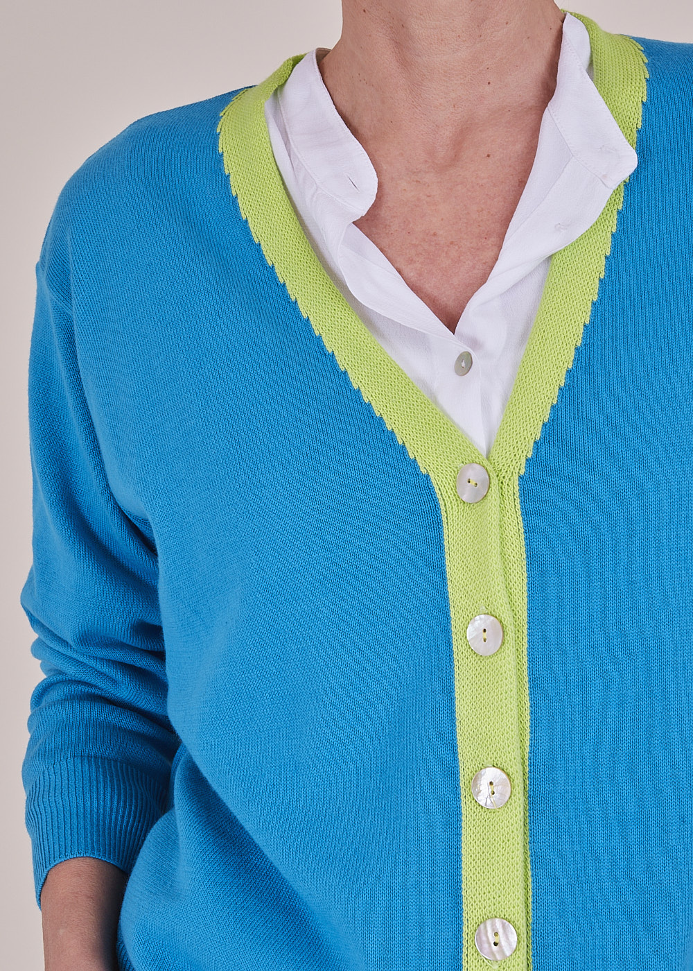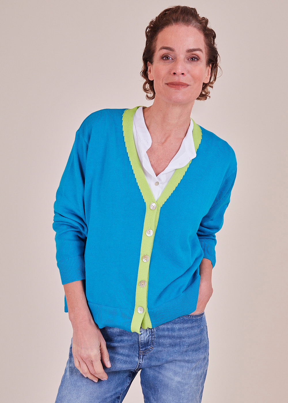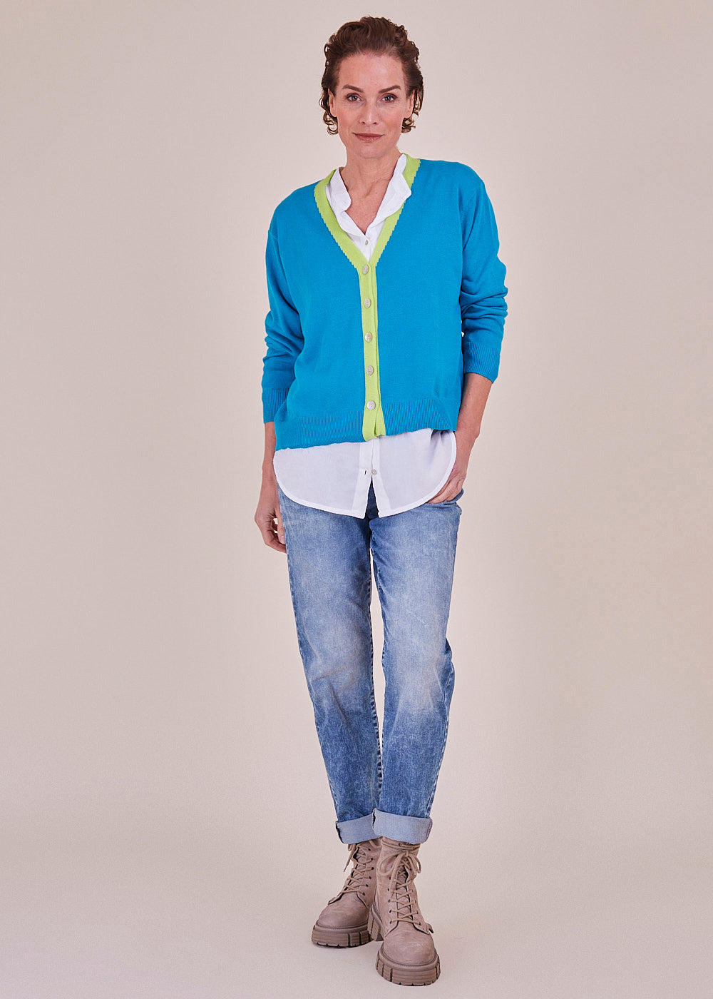 Einfach Zauberhaft! Diese kurz und kastenförmig geschnittene Strickjacke mit langen Armen aus unserem Bestseller Garn. Sie hat ein Rippenbündchen an den Ärmeln und am Saum. Durch die Frontknöpfe lässt sich diese Jacke wunderbar geschlossen tragen. Zum darunter tragen empfehlen wir dir unsere Basic Tops. Kuschelig weicher Tragekomfort mit absoluter Wohlfühlgarantie.