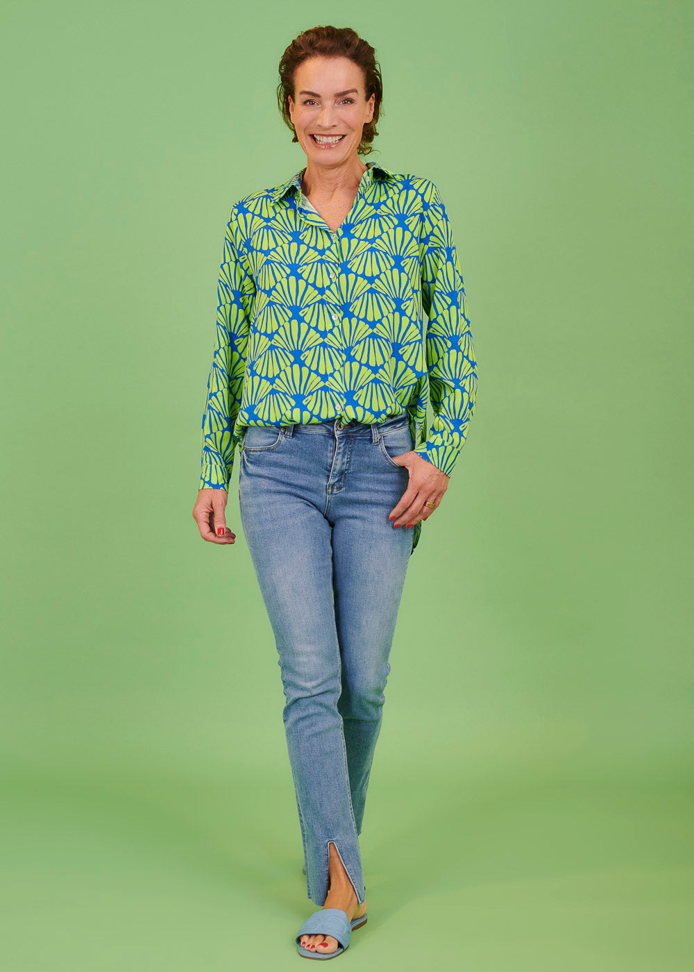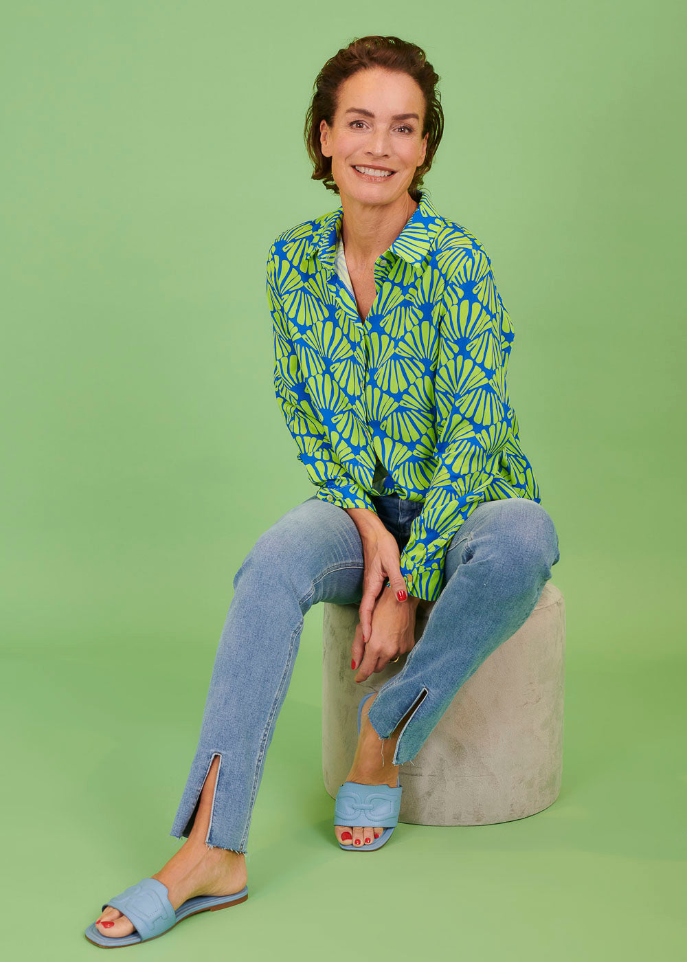 Wir lieben Print! Diese lässig fließende Viskosebluse in den neuen Trendfarben hat lange Ärmel mit überschnittenen Schultern. Durch ihr leichtes Viskosematerial hat sie einen angenehmen Tragekomfort. Sie hat durchgehende Knopfleiste. Ein absoluter Hingucker.