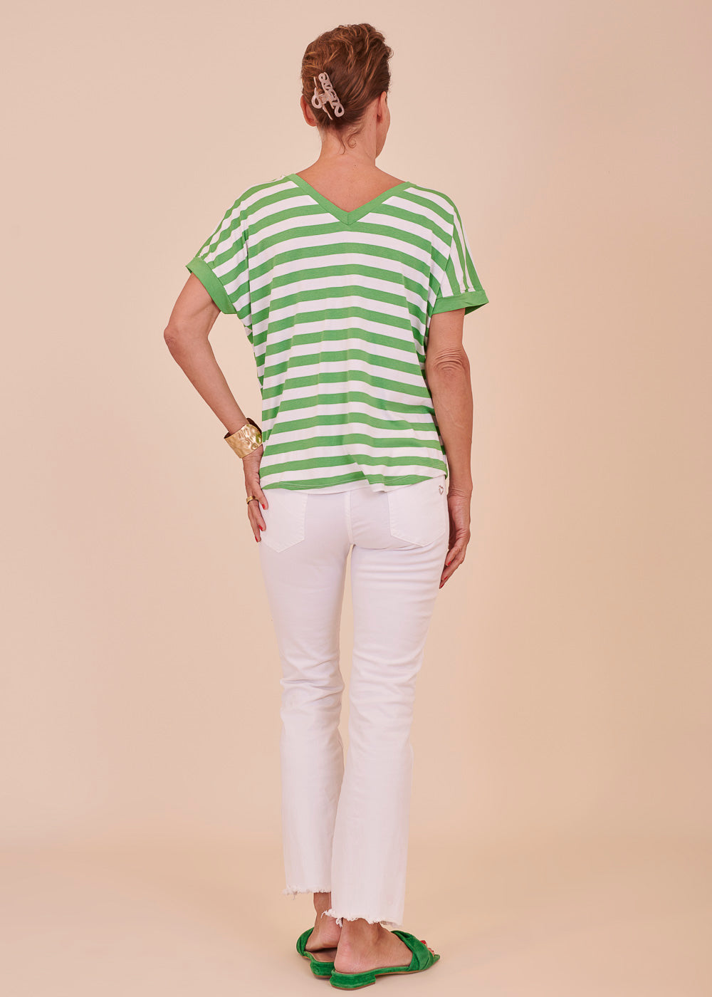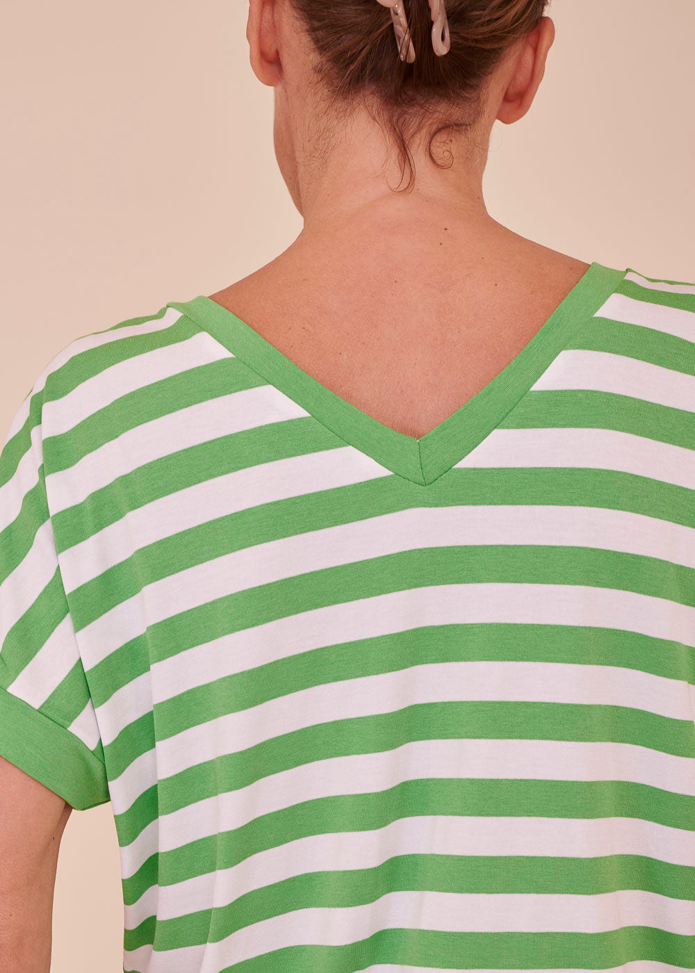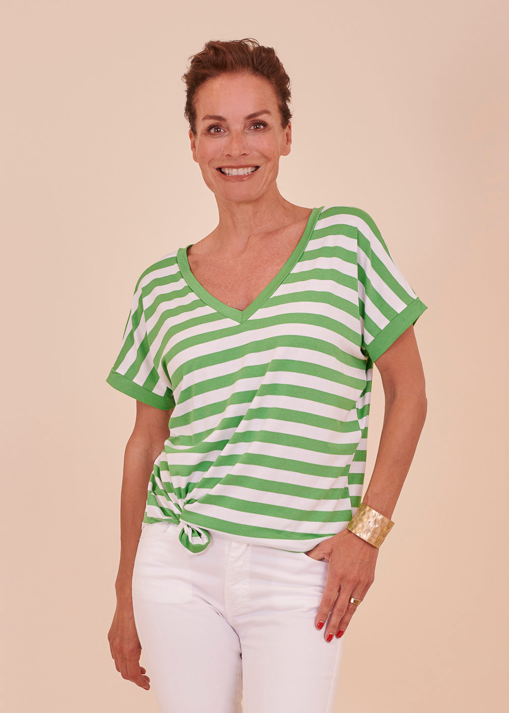 Wir lieben unsere Ringelshirts! Das wunderschön geschnittene Shirt mit V-Ausschnitt, lässt dich Strahlen. Die frischen Farben passen perfekt in den Sommer und lassen sich hervorragend mit weiß formatieren.