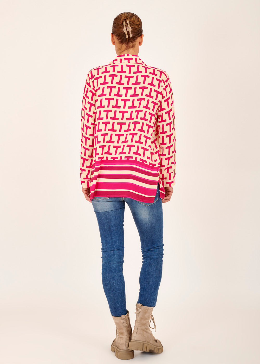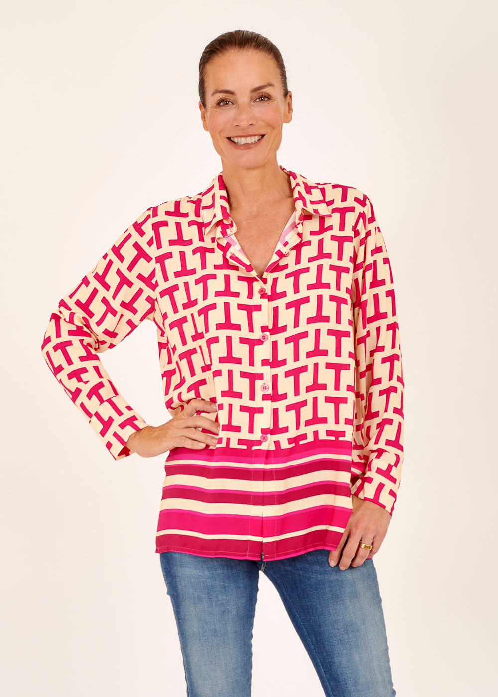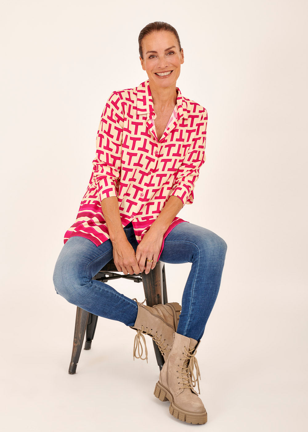 Unsere neue Fashionbluse für unsere Fashionista!  Durch diese fließende leichte Viskosebluse in einem zauberhaften Farben, zauberst du dir ein Strahlen ins Gesicht. Diese gemusterte Bluse im Stehkragen Stil ist lässig geschnitten. Die frischen Farben verleihen deinem Look die perfekte Frische. Einfach besonders!