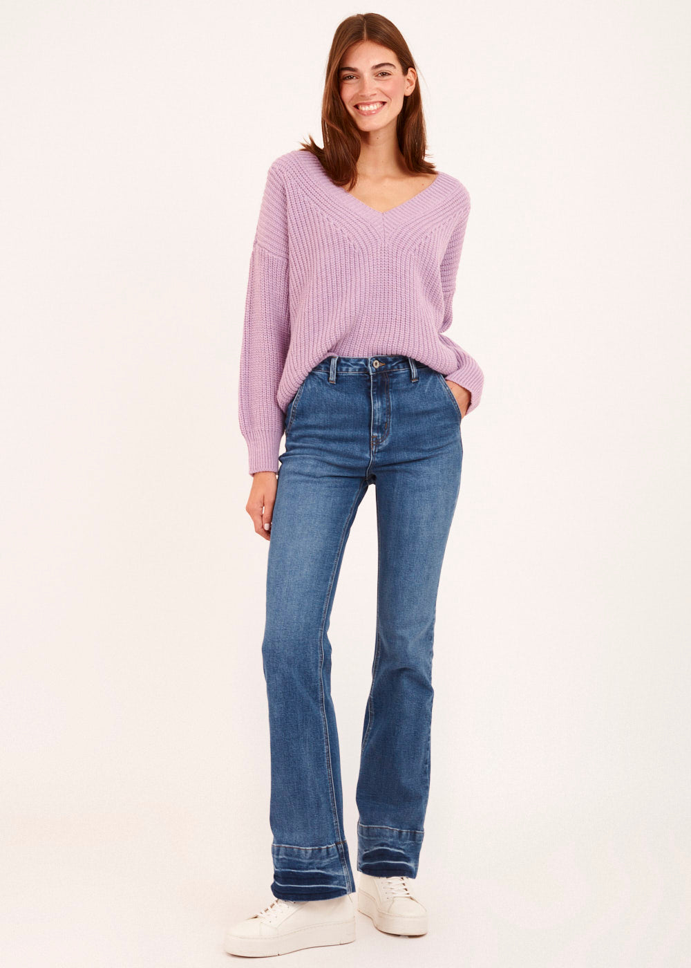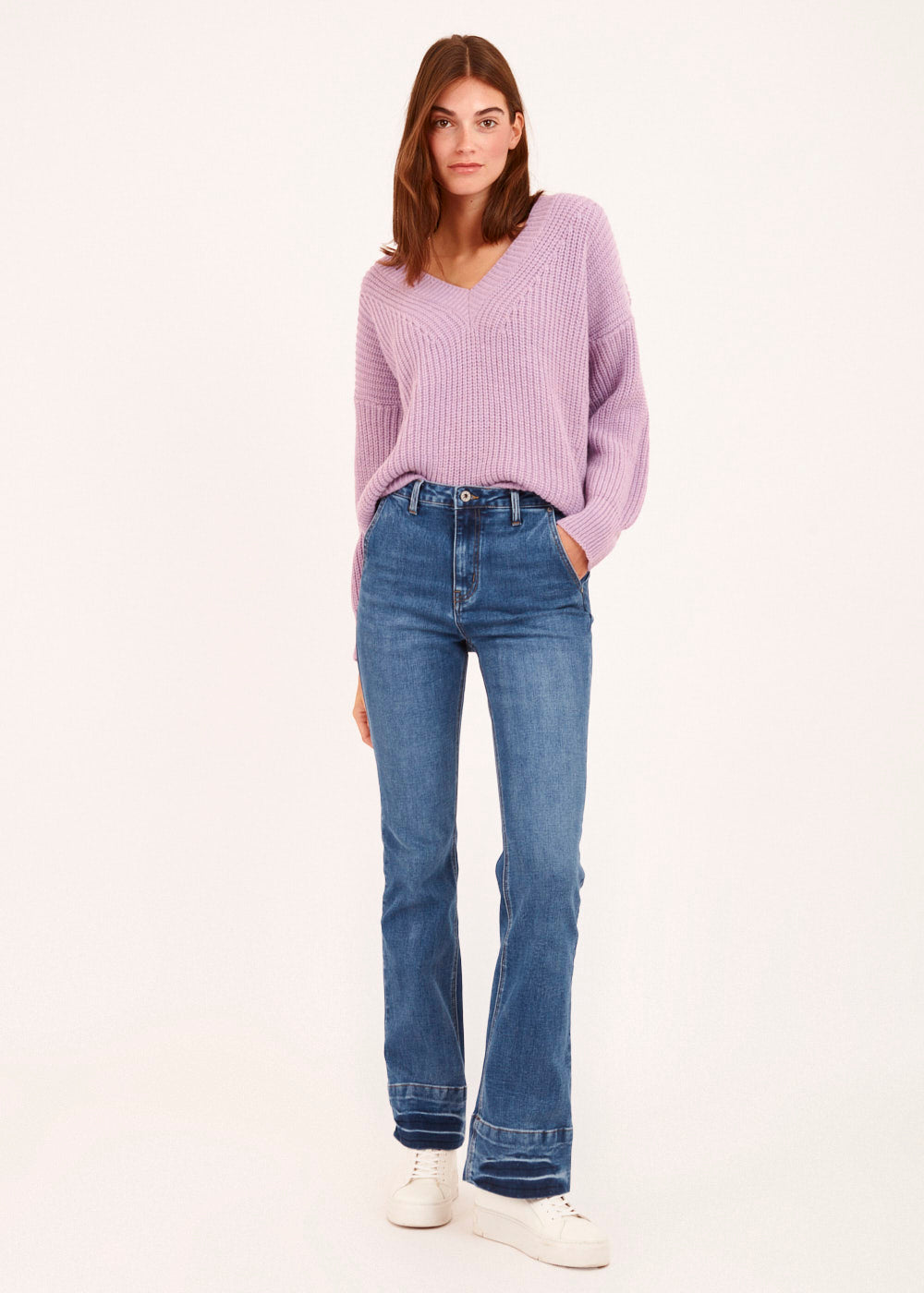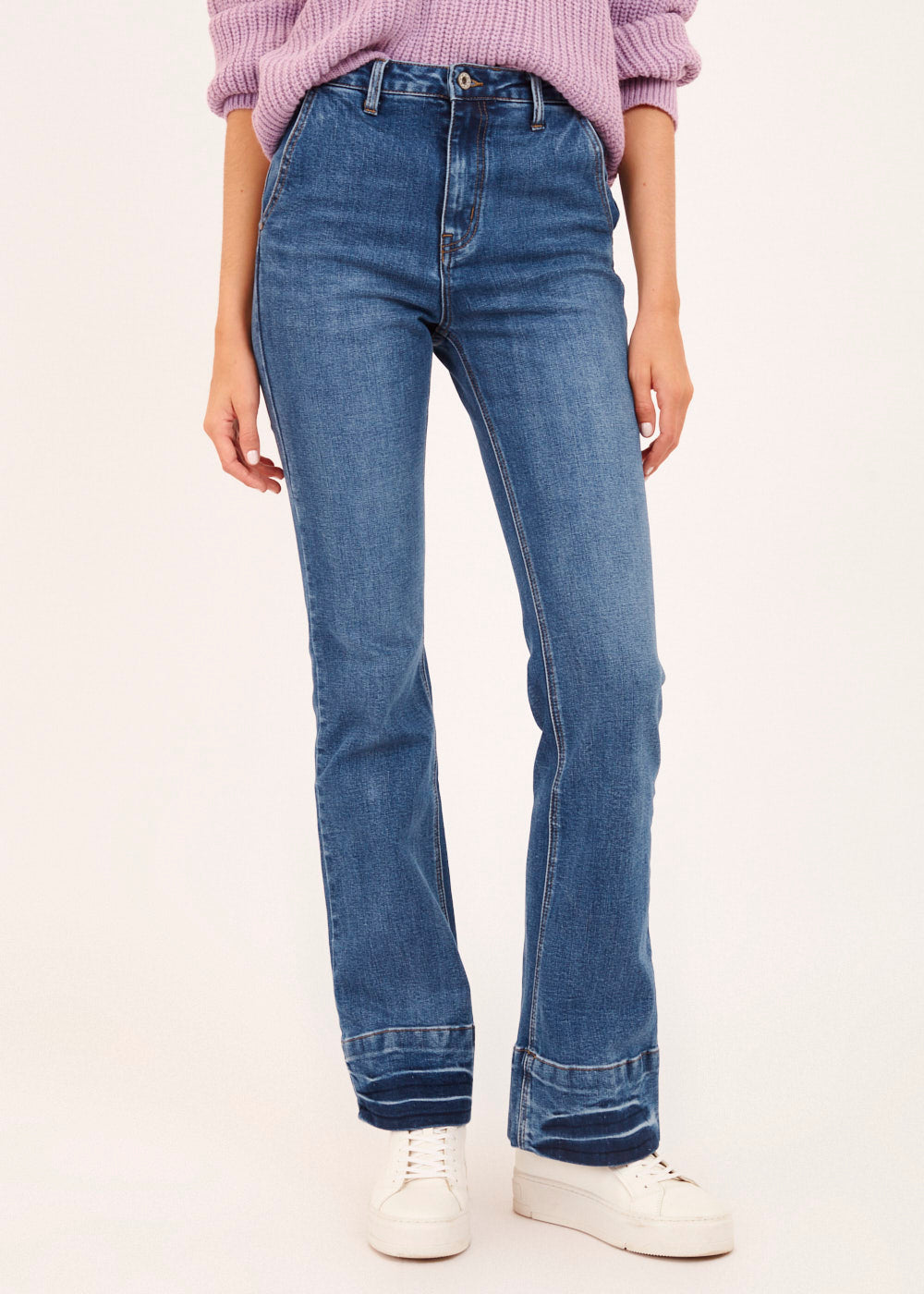 Einfach nur modisch! Diese Fashionjeans zaubert dir durch seinen Bootcut Schnitt eine traumhafte Silhouette. Dabei überzeugt sie durch ihr angenehmes besonderes Material und ist dadurch wunderbar zu kombinieren. Für unserer Fashionistas!