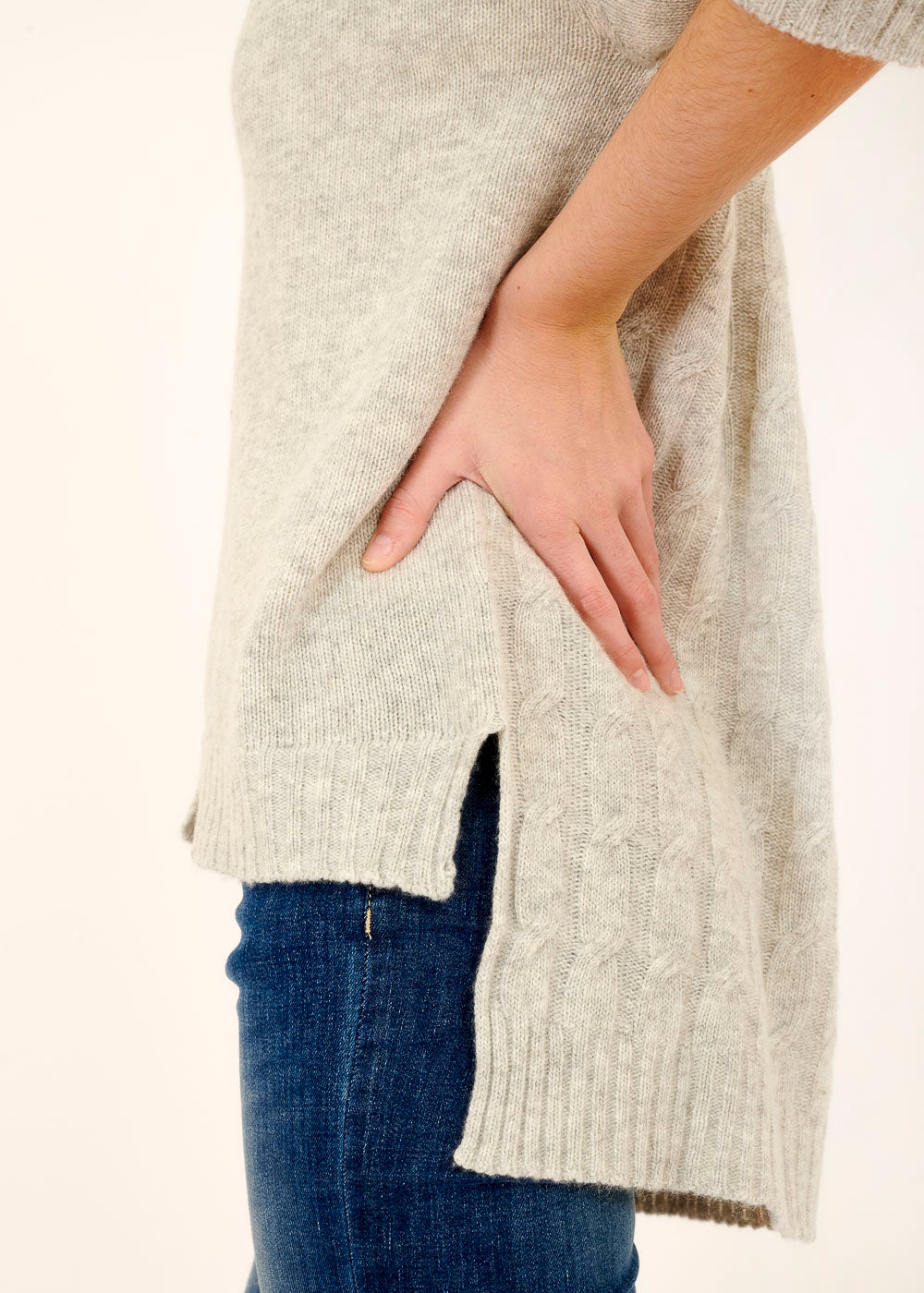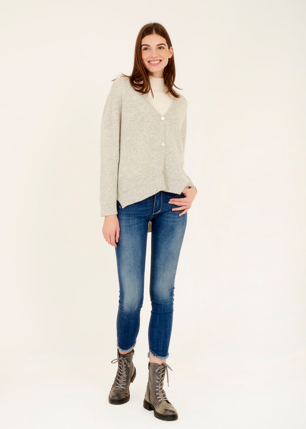 Unser lässiger Cardigan mit Zopfmuster ist ein wahrer Blickfang. Kurz und kastenförmig geschnittene Strickjacke mit langen Armen aus unserem Bestseller Garn. Sie hat ein Rippenbündchen an den Ärmeln und am Saum. Durch die Frontknöpfe lässt sich diese Jacke wunderbar geschlossen tragen. Zum darunter tragen empfehlen wir dir unsere Basic Tops. Kuschelig weicher Tragekomfort mit absoluter Wohlfühlgarantie.