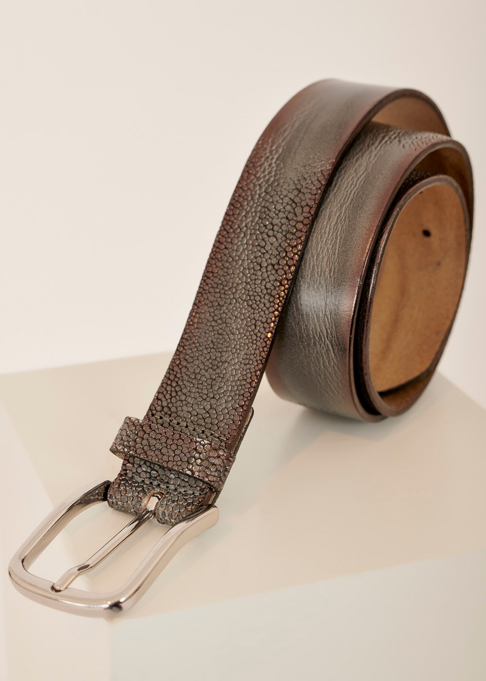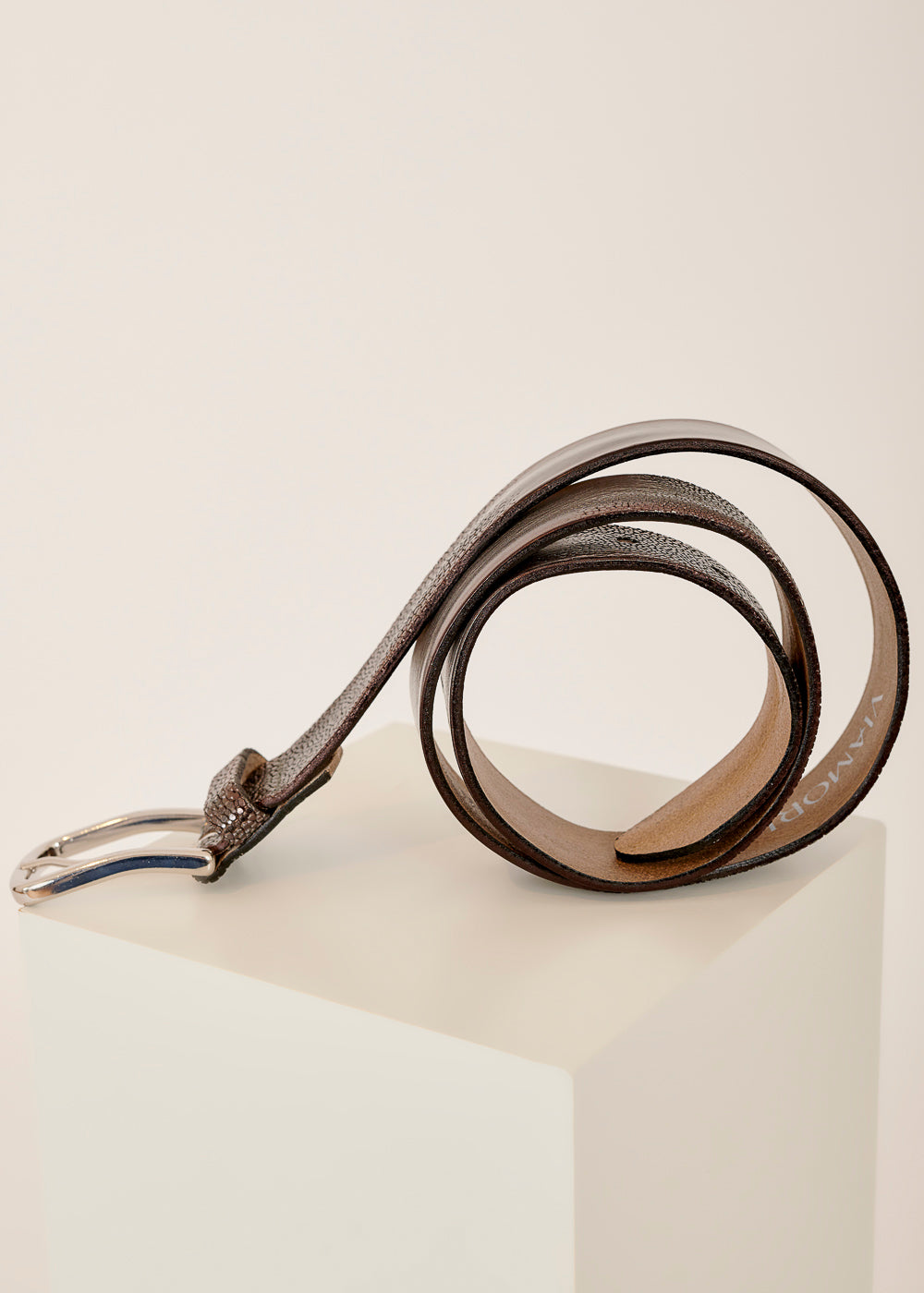 Die Besonderheit dieses Gürtels liegt in der Prägung des Leders, sowie der hochwertig verarbeiteten Schnalle.