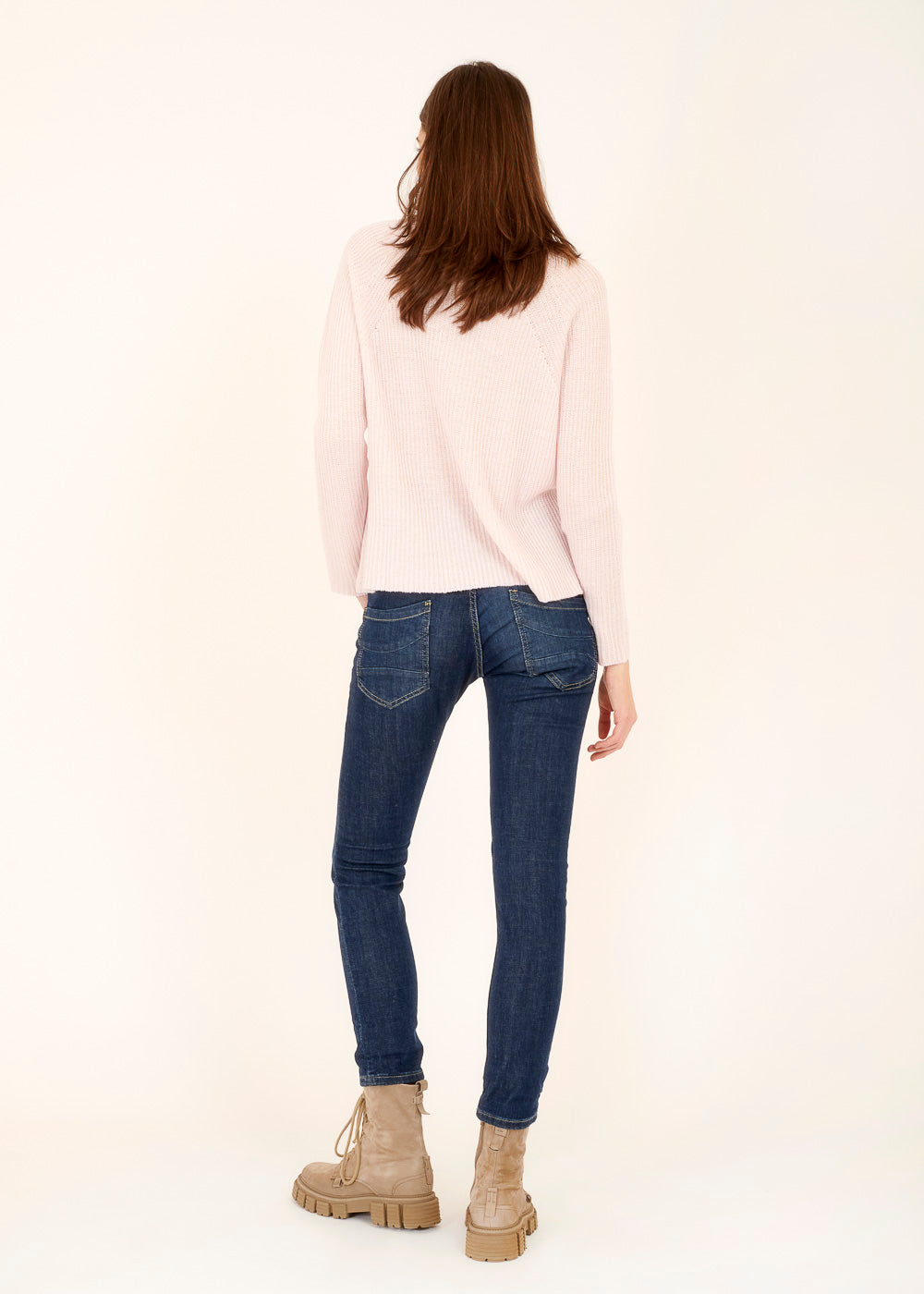 Die zarte Rosa-Farbe verleiht diesem Pullover eine feminine Ausstrahlung, während das schlichte Design ihn zu einem einfach zu kombinierenden Kleidungsstück macht. Die hochwertige Verarbeitung gewährleistet Langlebigkeit und Komfort.