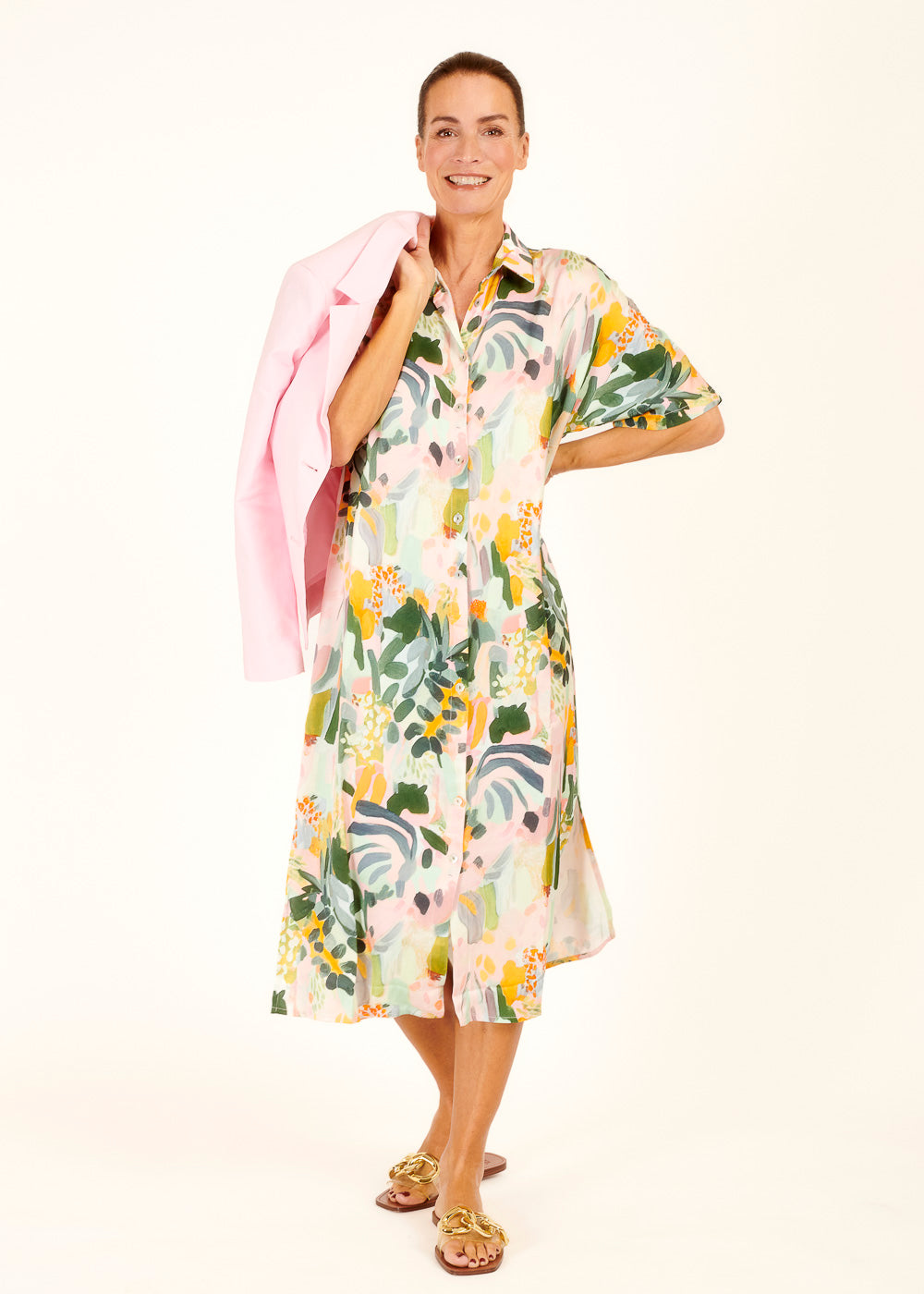 Entdecke unser bedrucktes Maxikleid - ein elegantes und vielseitiges Stück für deine Garderobe. Das luftige Design und die auffälligen Farbakzente machen es zur idealen Wahl für sommerliche Veranstaltungen oder entspannte Tage im Freien.