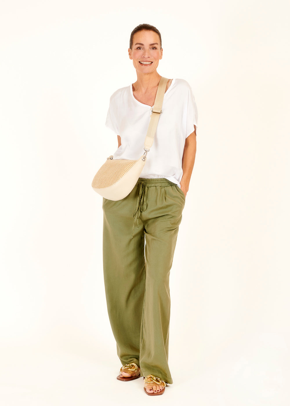 Die Crossbag Rafia von VIAMORI in Beige vereint Stil und Funktionalität in einem zeitlosen Accessoire. Mit ihrem eleganten Design und der natürlichen Farbe ist sie nicht nur ein Blickfang, sondern auch äußerst praktisch für unterwegs.