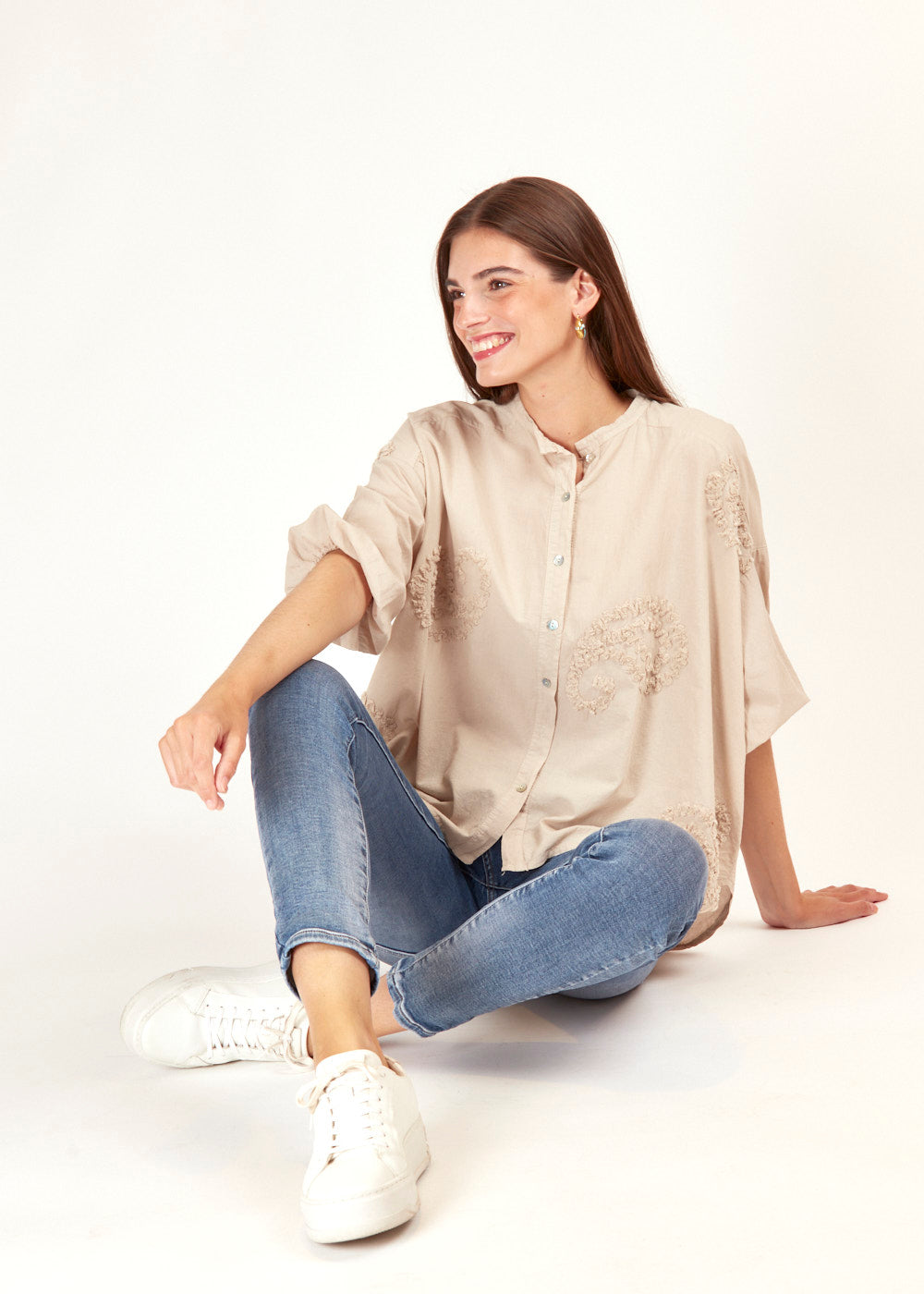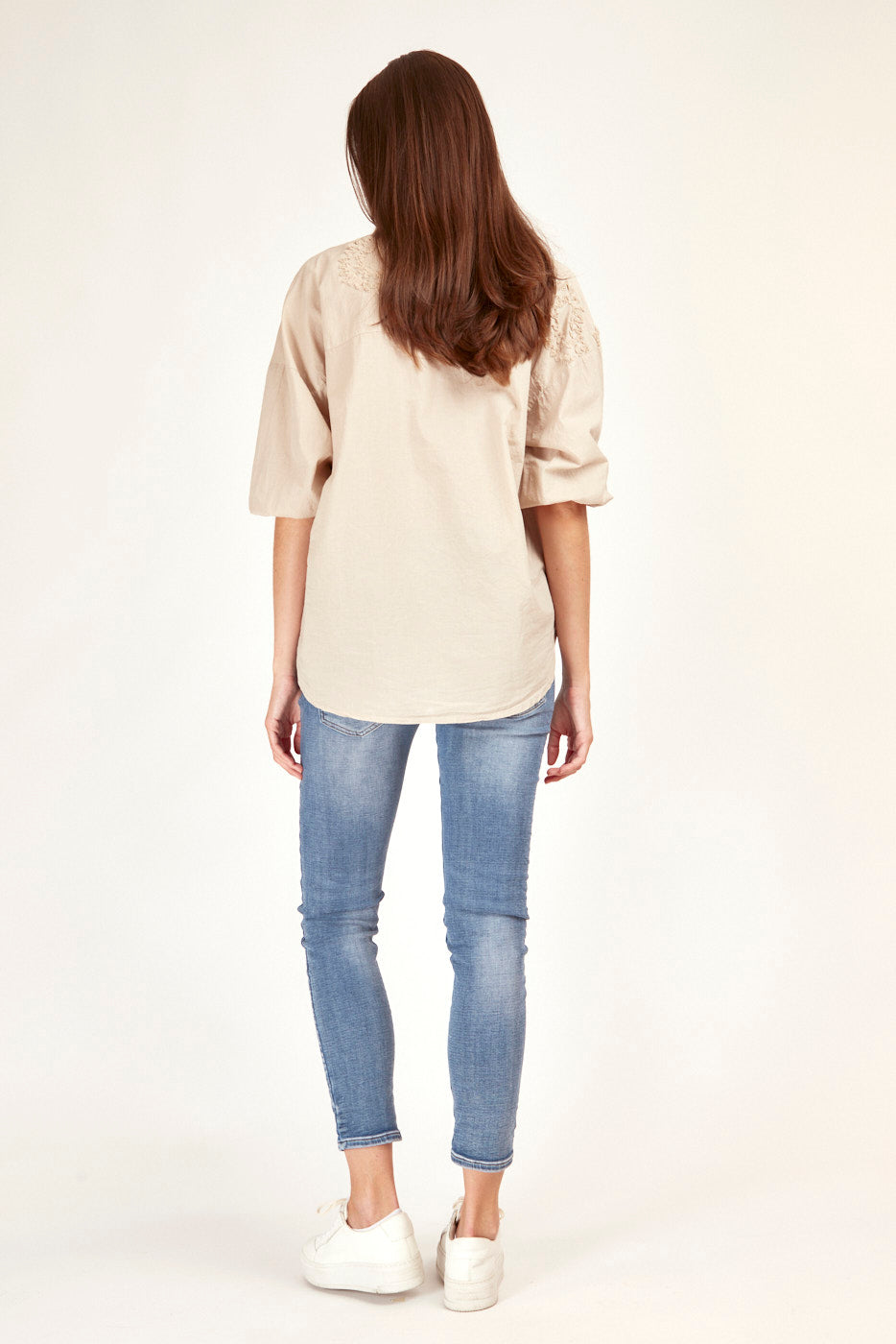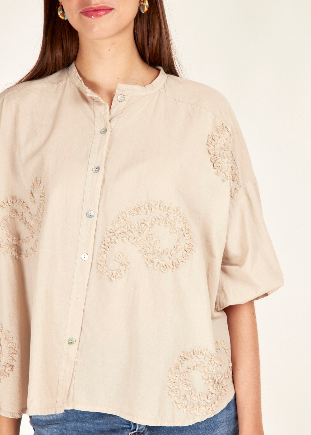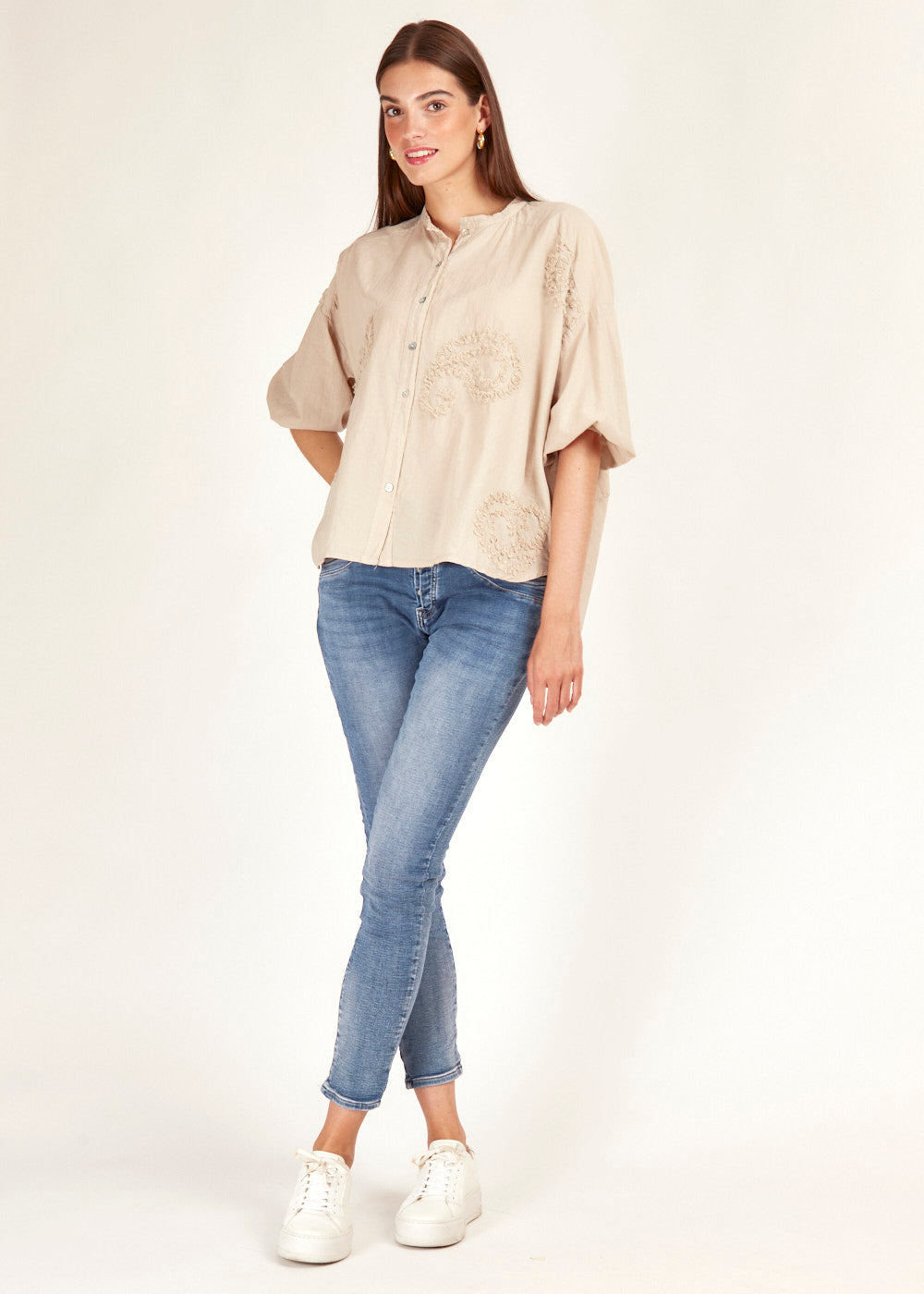Diese bestickte Bluse in Beige ist wie gemacht für deinen eleganten Alltagslook. Die feinen Details verleihen dir eine besondere Ausstrahlung und macht jedes Outfit zum Hingucker.