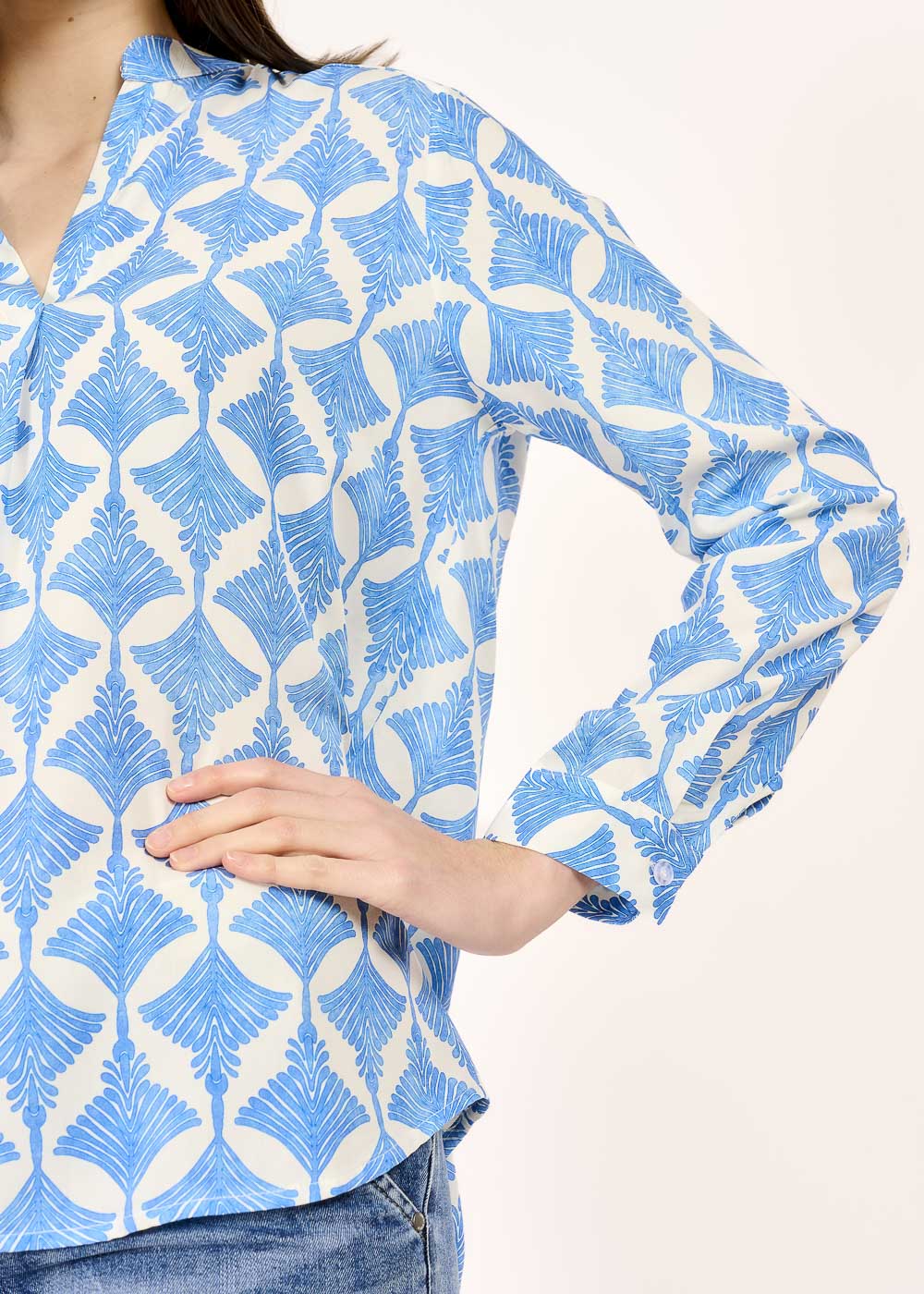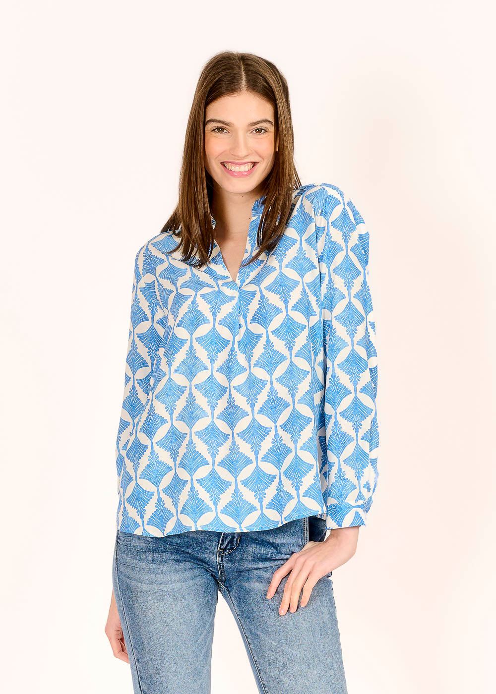 Diese bedruckte Tunika in Jeansblau begeistert mit einem frischen, modernen Druck und einem lockeren Schnitt, der für eine entspannte Passform sorgt. Die hochwertige Viskosequalität fühlt sich weich und angenehm auf der Haut an. Ideal für den Alltag, lässt sich diese Tunika vielseitig mit Jeans oder Leggings kombinieren.