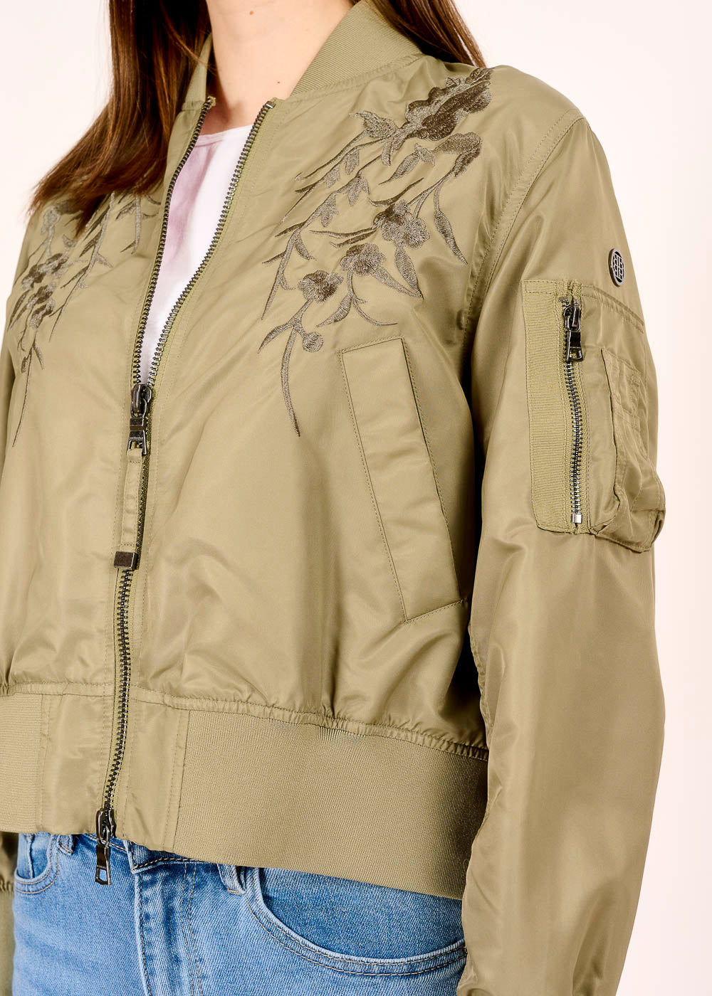 Diese bestickte Jacke in der ausdrucksstarken Farbe Verde vereint Eleganz mit einem Hauch von Boho-Chic. Die aufwendige Stickerei mit floralen Motiven auf Vorder- und Rückseite setzt stilvolle Akzente. Leicht und dennoch besonders, ist sie das perfekte It-Piece für einen individuellen Look.