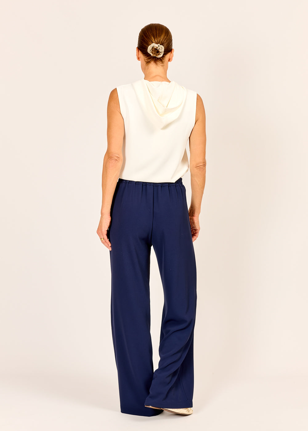 Diese edle Pantalone in der Farbe Blu Scuro überzeugt mit ihrer fließenden Silhouette und einem modernen, weiten Bein. Der komfortable Bund ohne Verschluss sorgt für ein angenehmes Tragegefühl und eine cleane Optik. Ob im Büro oder elegant gestylt für den Abend – diese Hose ist ein stilvoller Allrounder mit italienischem Flair.