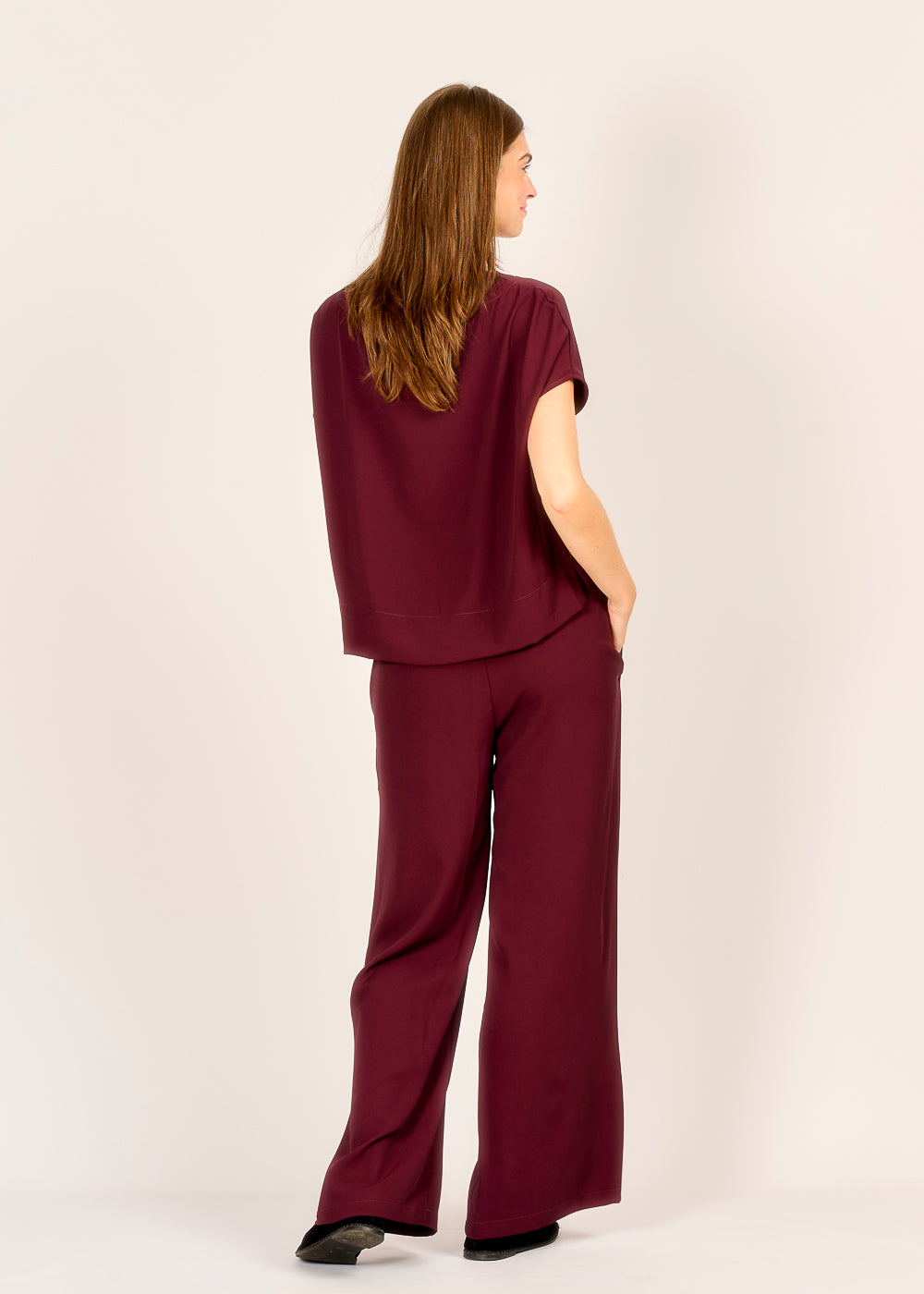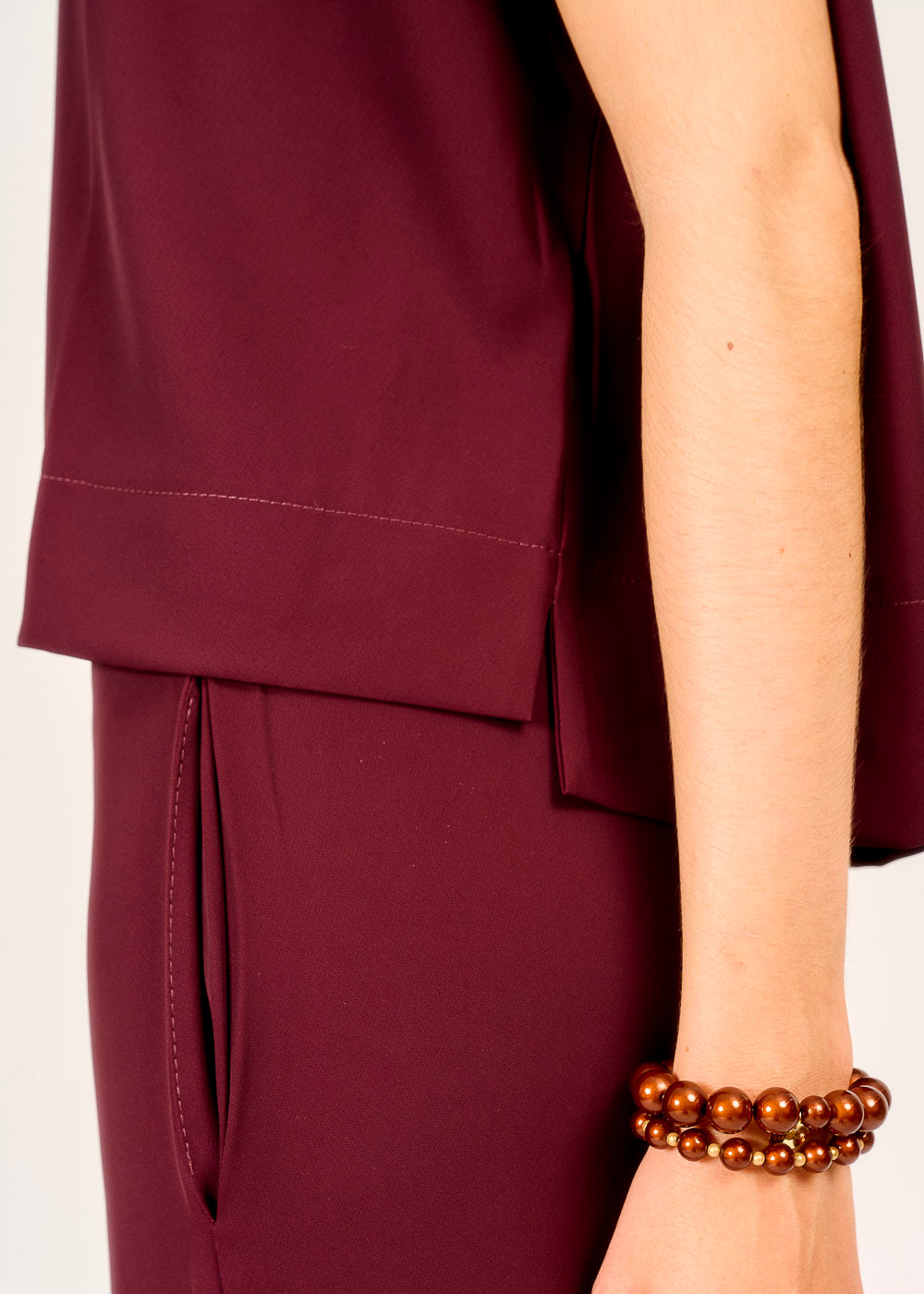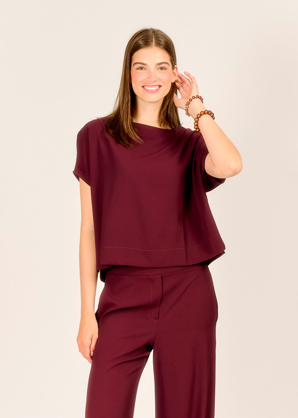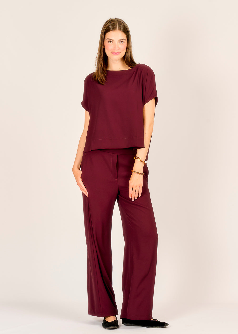 Dieses edle Shirt in der trendigen Farbe Vino ist ein echtes Highlight für stilvolle Everyday-Looks. Mit seinen kurzen Ärmeln und den feinen Schlitzen an den Seiten verleiht es deiner Silhouette eine moderne Leichtigkeit. Ein vielseitiges Keypiece, das Eleganz und Lässigkeit perfekt vereint.