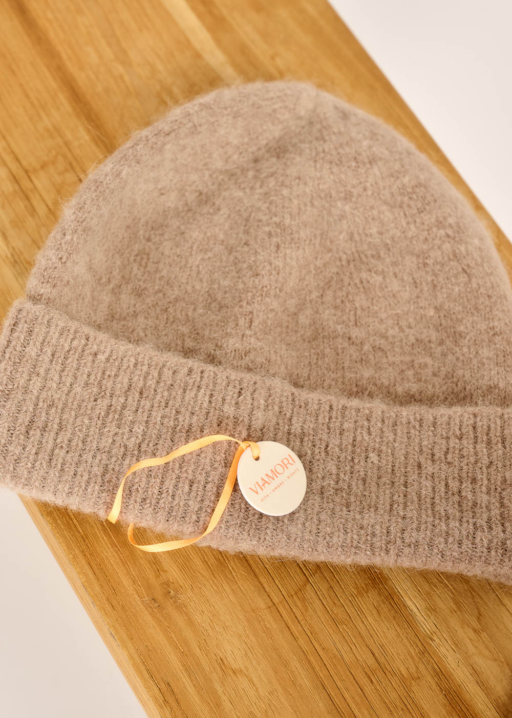Das VIAMORI Berretto aus edlem Babyalpaka in warmem Taupe verbindet luxuriöse Weichheit mit zeitlosem Stil. Die feine Strickqualität schmiegt sich sanft an und sorgt für wohlig warme Akzente an kühlen Tagen. Ein elegantes Accessoire, das jedem Outfit eine subtile, edle Note verleiht.