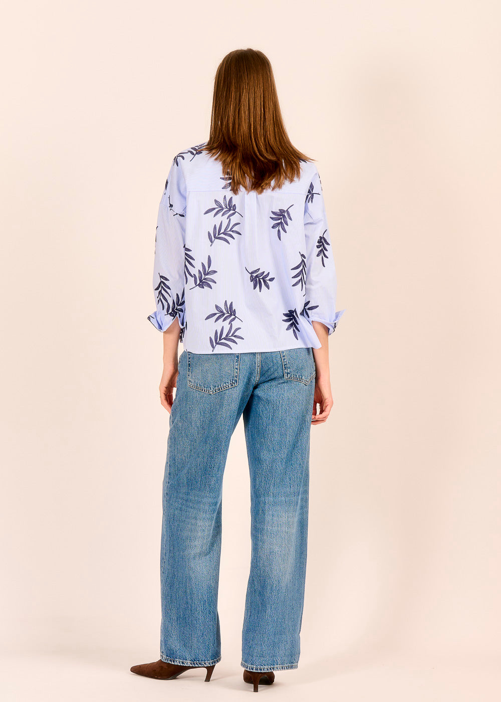 Diese blaue Streifenbluse aus Baumwolle verbindet den klassischen Stil mit moderner Raffinesse. Die feine Stickerei verleiht dem klaren Streifenmuster eine besondere Tiefe. Ob mit Jeans im Alltag oder mit edler Pantalone für den besonderen Anlass gestylt – diese Bluse verleiht jedem Outfit eine besondere Note.