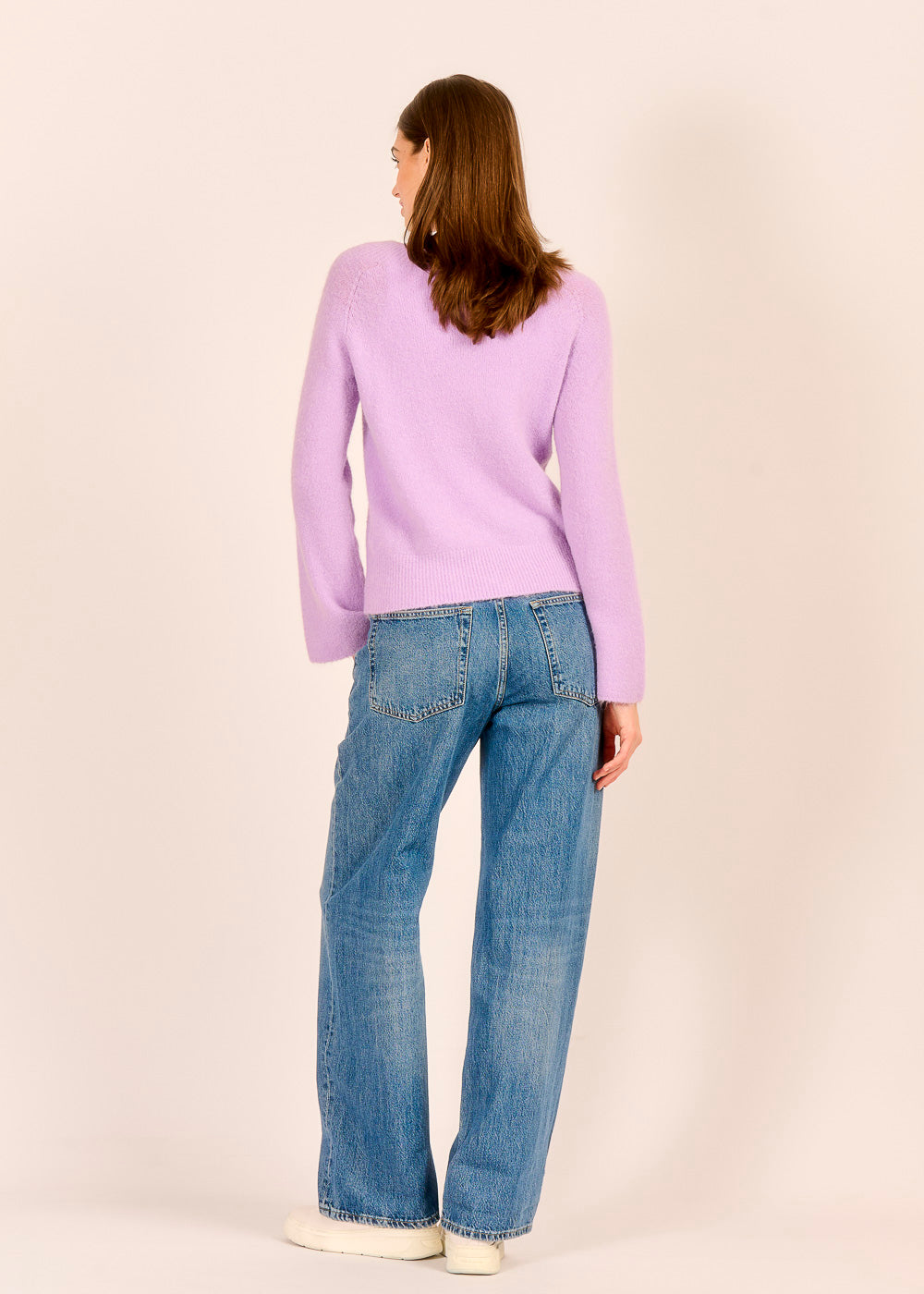 Der weiche, lilafarbene Strickpullover umhüllt und wärmt dich dank des Anteils an Baby Alpakawolle. Sein Carmenausschnitt sowie die ausgestellten Arme verleihen dem lässigen Design eine besondere Raffinesse. Der frische Farbton lässt sich besonders schön mit Denim oder hellem Cord kombinieren.