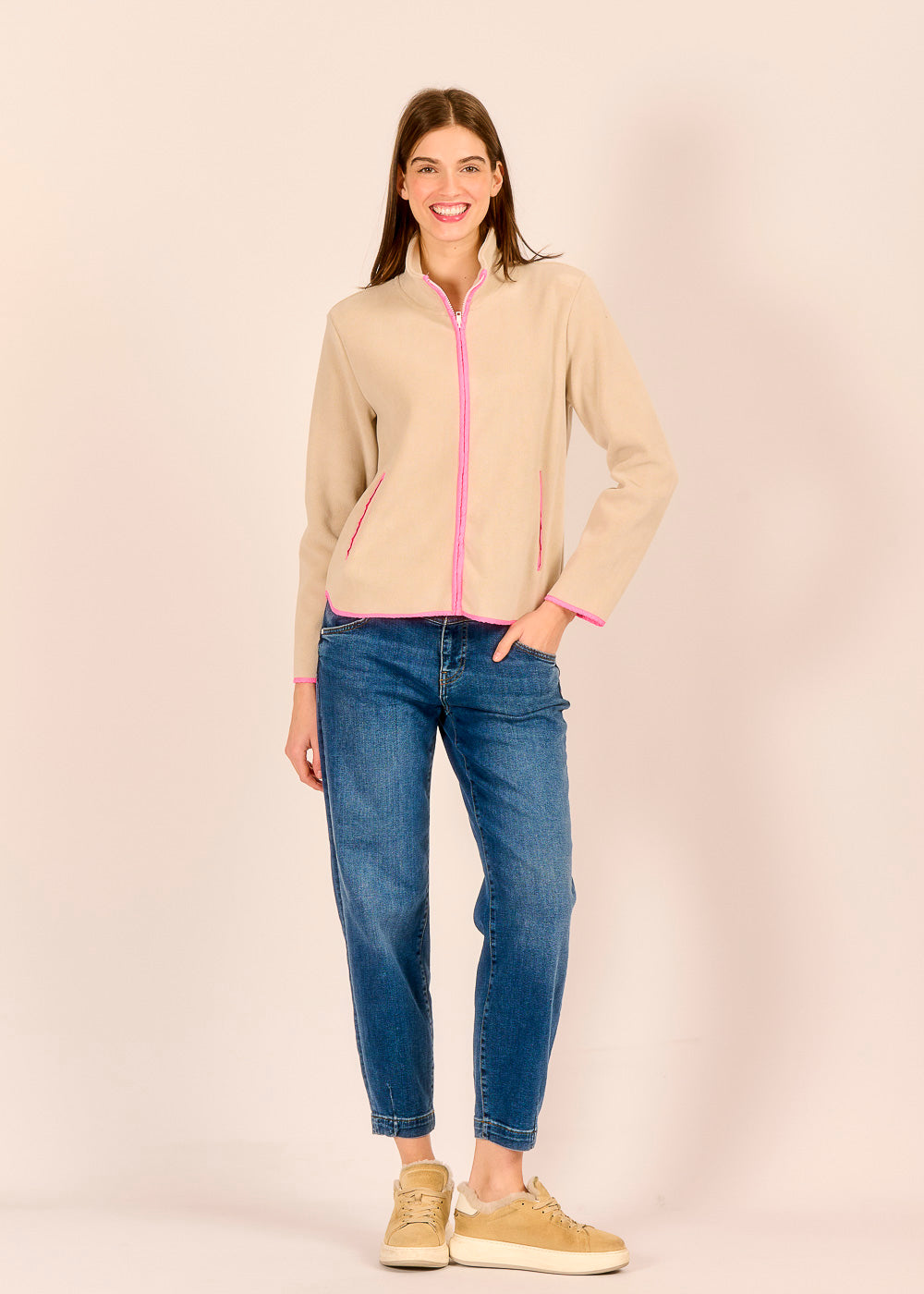 Die Fleecejacke aus Viskose schenkt dir Wärme und Geborgenheit. Dabei trifft Komfort auf zeitlosen Stil und farbliche Akzente. Die Kontrastdetails lassen das Design lebendig wirken. Ein besonderes Stück für alle, die Komfort lieben und subtil Farbe ins Spiel bringen möchten.